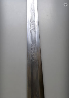 Le polissage a été terminé à la main et la lame a été entièrement attaquée à l'acide afin de révéler le dessin de sa construction.